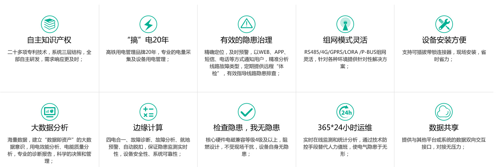 系統(tǒng)平臺(tái)采用邊緣計(jì)算技術(shù)、物聯(lián)網(wǎng)技術(shù)、大數(shù)據(jù)應(yīng)用對(duì)測(cè)點(diǎn)信息進(jìn)行實(shí)時(shí)在線監(jiān)測(cè)和統(tǒng)計(jì)分析,并判斷故障發(fā)生的類(lèi)型與原因,指導(dǎo)企業(yè)開(kāi)展治理,達(dá)到消除潛在的電氣火災(zāi)安全隱患。另外,結(jié)合線路或設(shè)備的用電效能分析、電能質(zhì)量分析,達(dá)到優(yōu)化供電結(jié)構(gòu)、節(jié)能減排的目的。