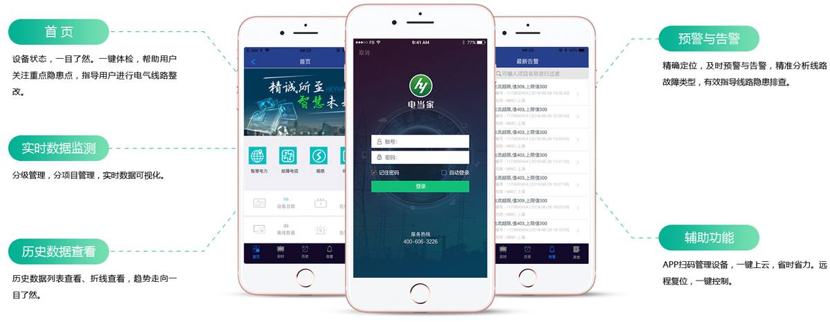 智慧用電云平臺(tái)如一個(gè)24小時(shí)貼身醫(yī)生,對(duì)電氣線路進(jìn)行全天候體檢,全面分析病源,開(kāi)出診斷報(bào)告,及時(shí)提醒隱患治療,變"被動(dòng)"為"主動(dòng)"。平臺(tái)借助WEB、APP、短信、電話等隨時(shí)隨地向安全管理人員推送預(yù)警信息,指導(dǎo)其開(kāi)展隱患治理,達(dá)到消除潛在的電氣火災(zāi)危險(xiǎn),實(shí)現(xiàn)電的科學(xué)管理。